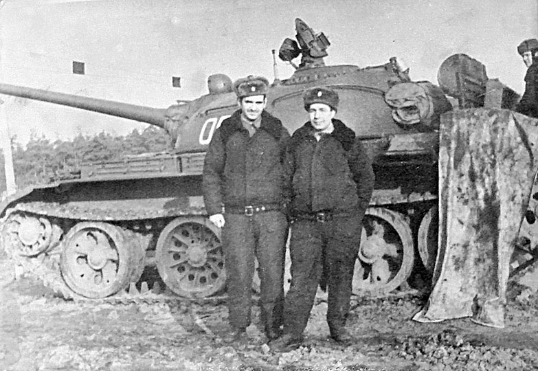 (3 из 6) Лейтенант Авдюшев (?) и Х. Айнетдинов у командирской машины 050. Из архива Айнетдинова Х. У. ©