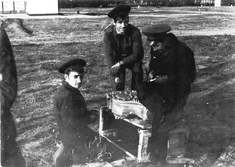 (6 из 6) На полигоне. Прапорщики В. Березань, Н. С. Сохацкий и Х. Айнетдинов. Из архива Айнетдинова Х. У. ©
