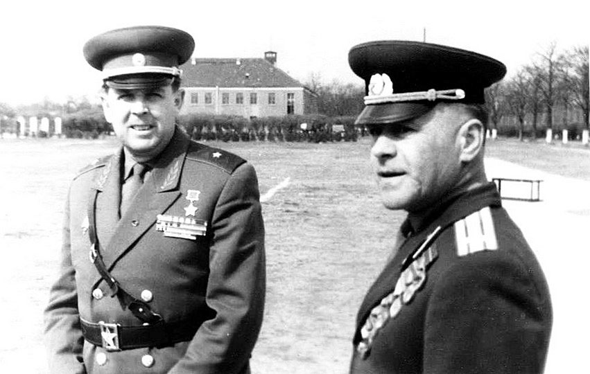 (9 из 23) Командир 10-го отб гв. подполковник Алексеев А. Н. и командир 6-й гв. мсд генерал-майор Писарев. Фото из архива Алексеева А. Н. ©