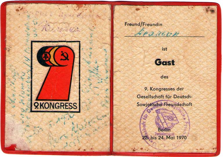 (38 из 38) Удостоверение гостя 9 Конгресса Общества германо-советской дружбы. Из архива Г. А. Ананьина. ©
