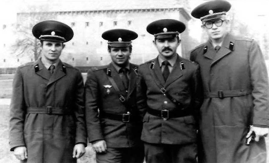 | (2 из 4) Офицеры 2-ой танковой роты. Слева направо: командиры взводов ст. л-т Николай Ольвач, л-т Алексей Кудрявцев, командир роты ст. л-т Алексей Поляков, ст. л-т Александр Бурков. Из архива А. Ф. Буркова. © |