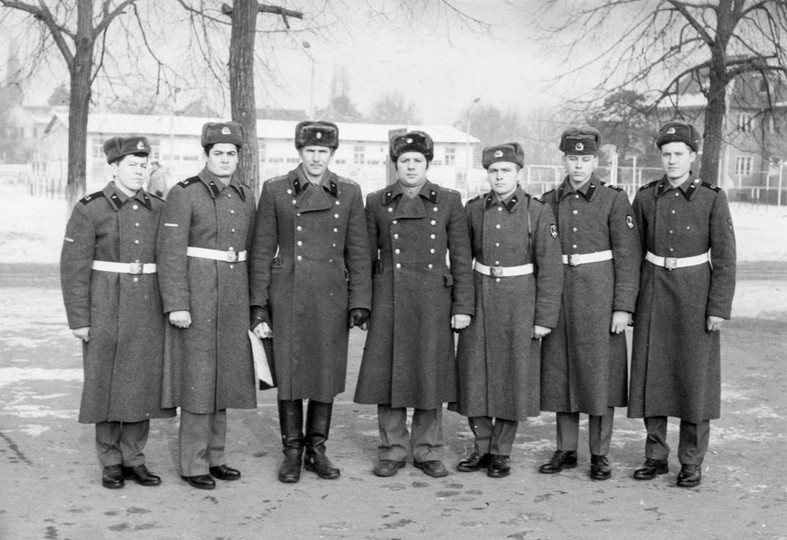 (24 из 32) На плацу 10 отб. 3-й слева ст. л-т Александр Яковюк, рядом А. А. Ефимов. Из архива А. А. Ефимова. ©