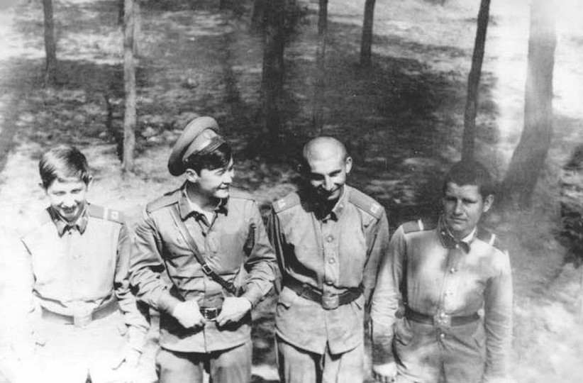 (9 из 31) Мюльрозе, 1975 год. Я со своим экипажем: механик-водитель Шушарин, заряжающий Муминов, наводчик орудия Бочкин. Из архива В. Ф. Ким. ©