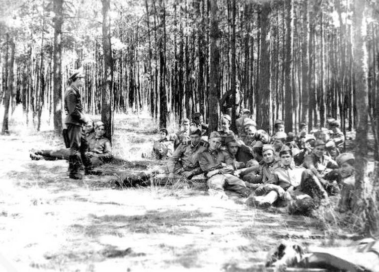 (16 из 31) Хайдехофский полигон, 1975 год. Отдых в лесу после стрельбы (я стою). Из архива В. Ф. Ким. ©
