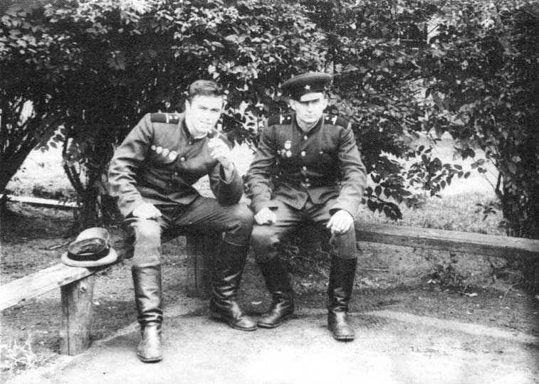 (4 из 83) Я и Тишкин в курилке у казармы. Из архива В. И. Кручинина. ©