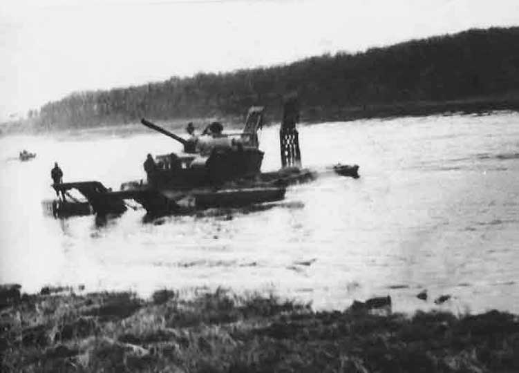 (53 из 83) На учениях. Переправа танка на пароме. Из архива В. И. Кручинина. ©