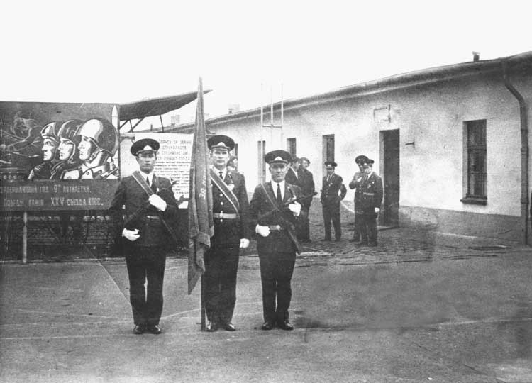 (31 из 86) Знаменная группа. Слева направо прапорщики Киселевич, Горлов, Моголюшко.