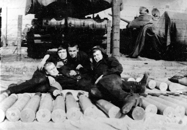| (6 из 7) Июнь 1975 г. Те же лица. Обслуживаем танковый боекомплект. Сзади с раскрытыми люками моя машина с башенным номером 050 – танк командира 5 тр капитана К. Мичурина. Из архива В. В. Толстых. © |
