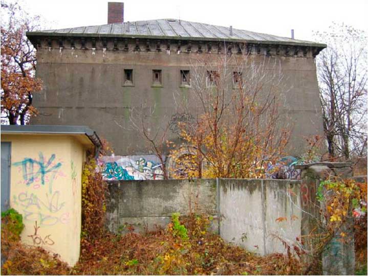 (4 из 13) Западный фасад бункера, выходящий на Цвизелер штрассе. Фото П. Голубева.