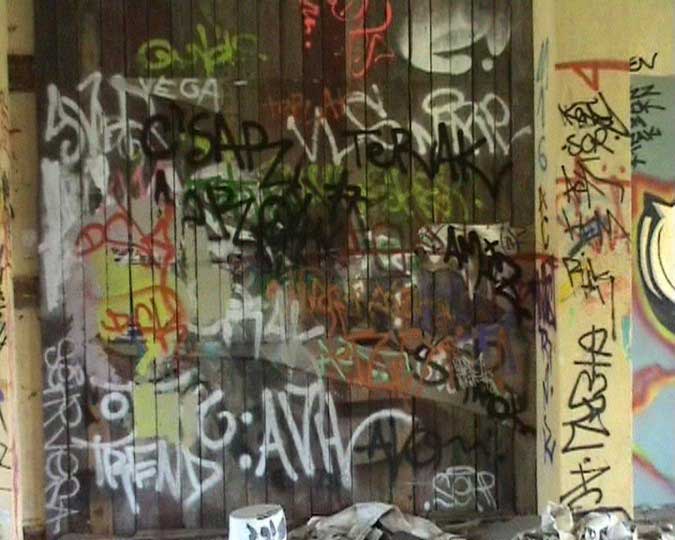 (27 из 144) Этим здоровенным щитом заколочена входная дверь первого этажа.