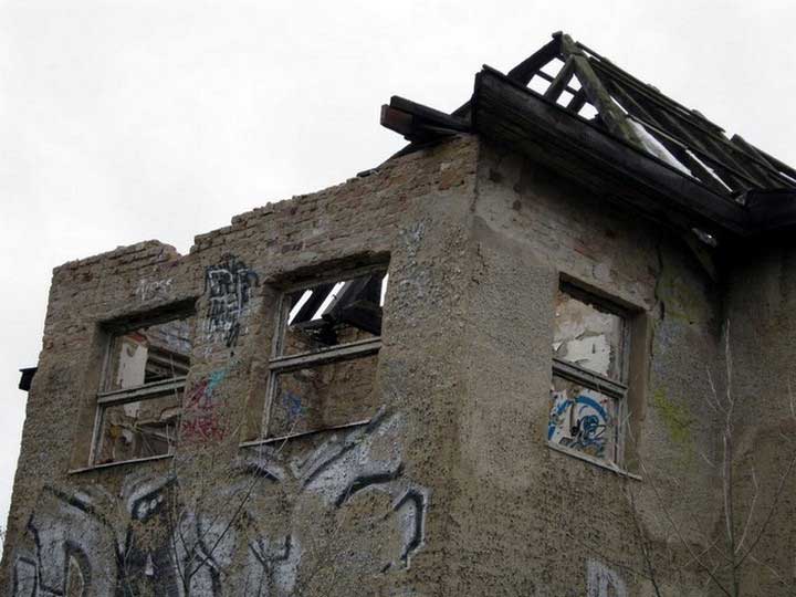 (45 из 76) Немцы разобрали часть крыши. Точнее, начали разбирать стропила — крыши давно уже нет.