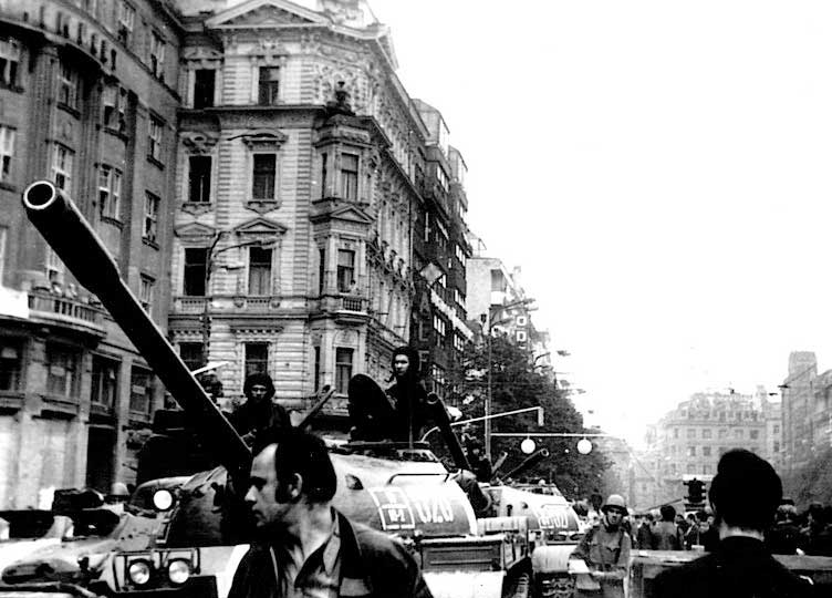 | (12 из 22) Машины 2-й танковой роты на улицах Праги. На башне в командирском люке командир роты капитан Христич, награжденный впоследствии орденом Красной Звезды. Из архива В. И. Кручинина. © |