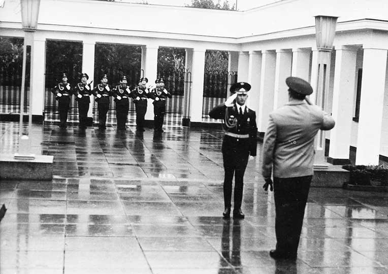 | (12 из 47) Это фото мне дал в плане дембельского обмена Олег Кратович (первым стоит, сержант, он моего призыва и, кстати, наш земляк, по-моему из Брестской области). А рапортует командир 1-й роты ст. лейтенант Колеватов (до него был Юрченко), причем рапортует самому главкому ГСВГ Зайцеву! Из архива А. Л. Галиновского. © |