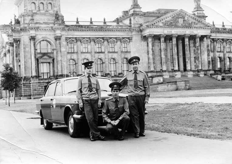| (26 из 47) Август 1983. Скоро дембель и у меня, и у подполковника Ненастьева. За глаза его звали Дед. Ну, и Алику Арефьеву (нашему водиле) фото у Рейхстага конечно не помешает. Из архива А. Л. Галиновского. © |