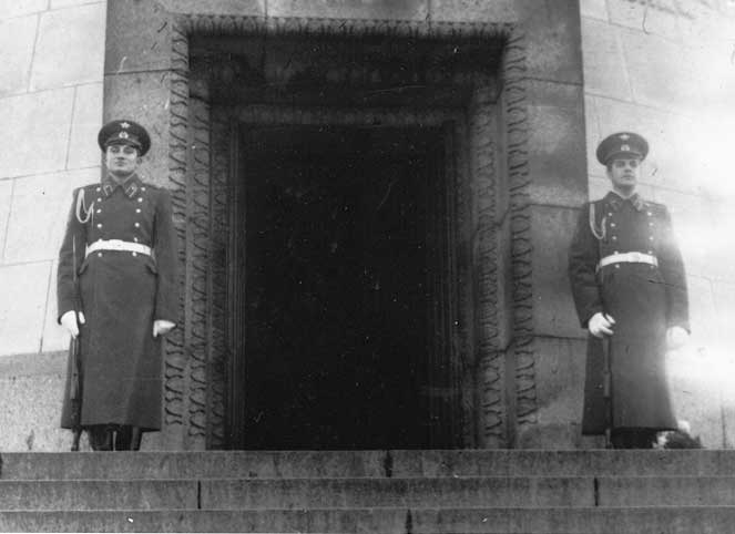 (30 из 95) На посту в Трептов-парке. Справа — я, слева — Курган Владимир. Из архива В. Н. Миляева. ©