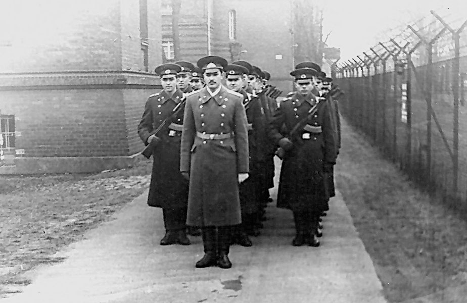 (42 из 89) Перед сменой французского караула. Начальник караула ст. лейтенант А. Конарев. Шпандау, март 1972 г. Из архива В. Н. Пузинского. ©