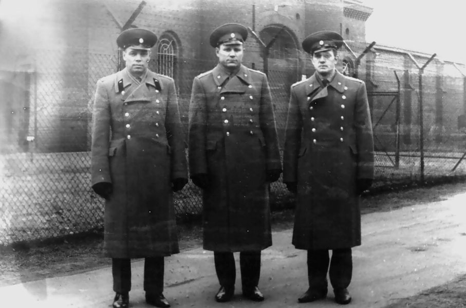 | (49 из 89) Начальник особого отдела бригады капитан Черных, командир 133 омсб подполковник Н. П. Фомин, командир 2 мср ст. лейтенант В. Стрельников. Шпандау, март 1972 г. Из архива В. Н. Пузинского. © |