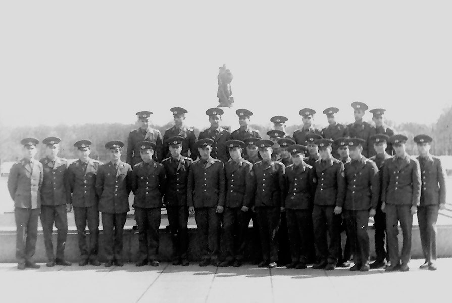 (75 из 89) Командир 2 мср В. Стрельников с личным составом роты в Трептов-парке. Из архива В. Н. Пузинского. ©