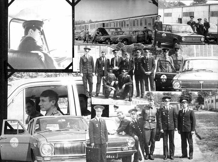 (8 из 53) Это страничка сверхсрочников, они её заслужили! Слева вверху старшина Федоров. Внизу под ними за рулем — Воробьев, рядом с ним ст. лейтенант Степанов, а наблюдателем Андрюшка Берх. В самом центре фото стоит старшина Феохари, слева от него старшина Макаренко, а справа через одного — старшина Щербина и Толик Лантушенко. Внизу справа стоит рядовой Альберт Гореванов — он был сначала в первом взводе, а потом в автовзводе 3 роты. Во время показательных выступлений на плацу ему дали ключи от УАЗика и сказали, чтобы проехал по кругу, а выступали спецподразделения десантуры, специально привезенные новым комбригом Романовым. И вот он едет на первой скорости, а сзади подбегает какой-то бугай, запрыгивает на ходу в машину и отработанным ударом сапога буквально выстреливает Альберта на плац. Альберта после выступления отвезли в госпиталь, шишка на груди была с голову! Из архива В. И. Толстова. © |