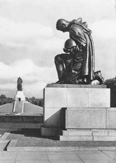 (64 из 183) Коленопреклоненный воин. Трептов-парк. 1970 год. Из архива А. В. Фомина. ©