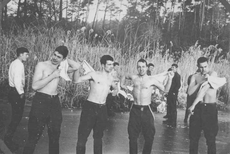 (110 из 183) Помылись и побрились в проруби в пруду после двухнедельного сидения на усилении чешской границы зимой 1970г. Из архива А. В. Фомина. ©