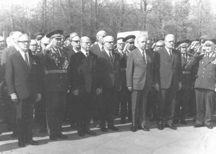 (134 из 183) Э. Хонеккер, Главком ГСВГ Куликов В. Г., В. Ульбрихт, В. Штоф, посол СССР Абрасимов П. А. в Трептов-парке 9 мая 1970 года. Из архива А. В. Фомина. ©