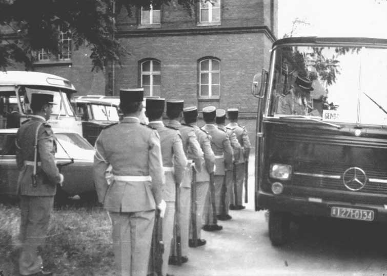 (150 из 183) Сменившийся французский караул садится в автобус. Из архива А. В. Фомина. ©