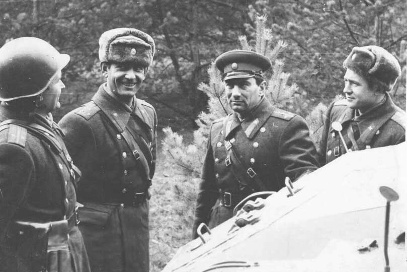 | (160 из 183) Тактические учения, весна 1970 года. Командир 3 взвода л-т Смирнов В. И., командирр 3 мср Данько В. П., замполит 154 омсб к-н Перчеклий, зампотех 154 омсб ст. л-т Суворов. Из архива А. В. Фомина. © |