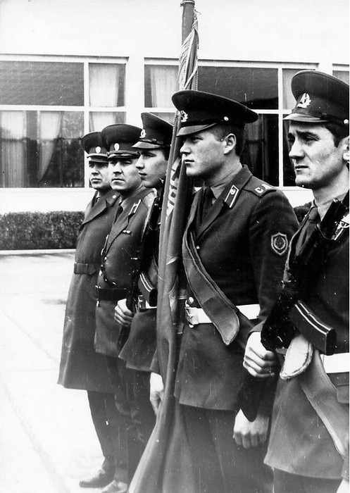 (2 из 136) Знаменная группа 154 омсб. На заднем плане командир батальона майор В. В. Матюшин,