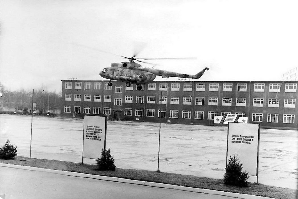 (10 из 136) Вертолет с Главкомом ГСВГ садится на плац бригады. Из архива И. Ю. Гришина. ©