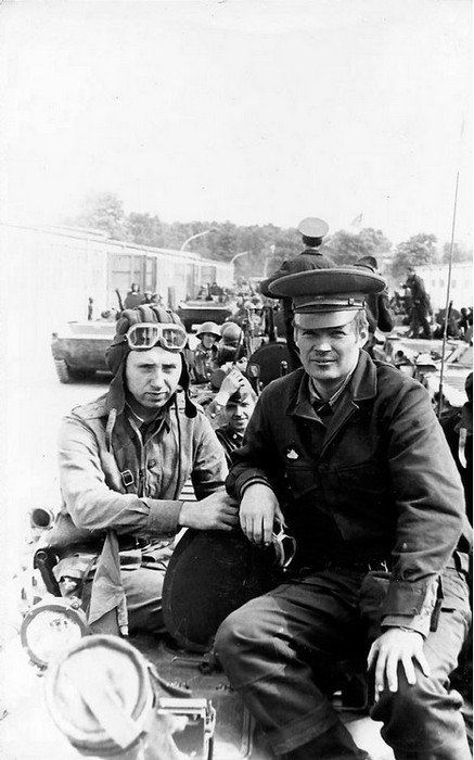 (22 из 136) В парке боевых машин 154 омсб. Ст. лейтенант И. Ю. Гришин (слева) и капитан М. А. Загороднов.