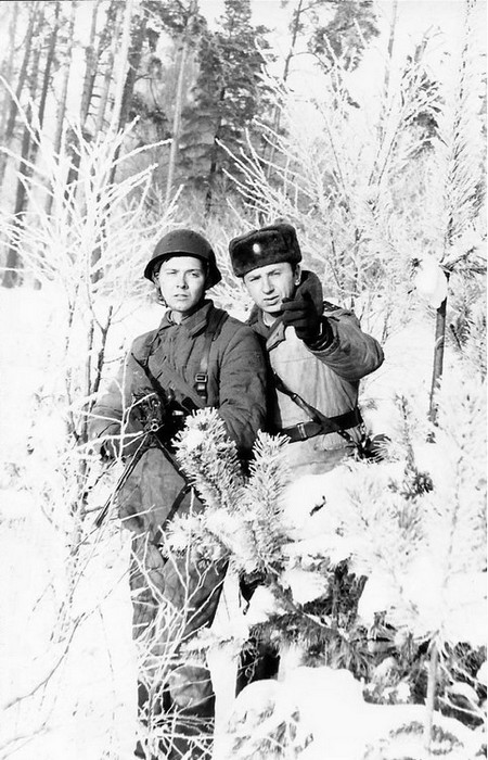 (87 из 136) Пулеметчик рядовой Прохоренко (слева) и ст. лейтенант И. Ю. Гришин.