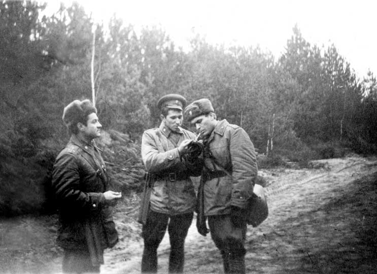 (6 из 34) Офицеры 1 роты 154 омсб на полигоне. Командир роты капитан Расстрогин, командир 1 взвода лейтенант Абакумов, 2 взвода ст. лейтенант Нагорный. Из архива В. И. Калмыкова. ©
