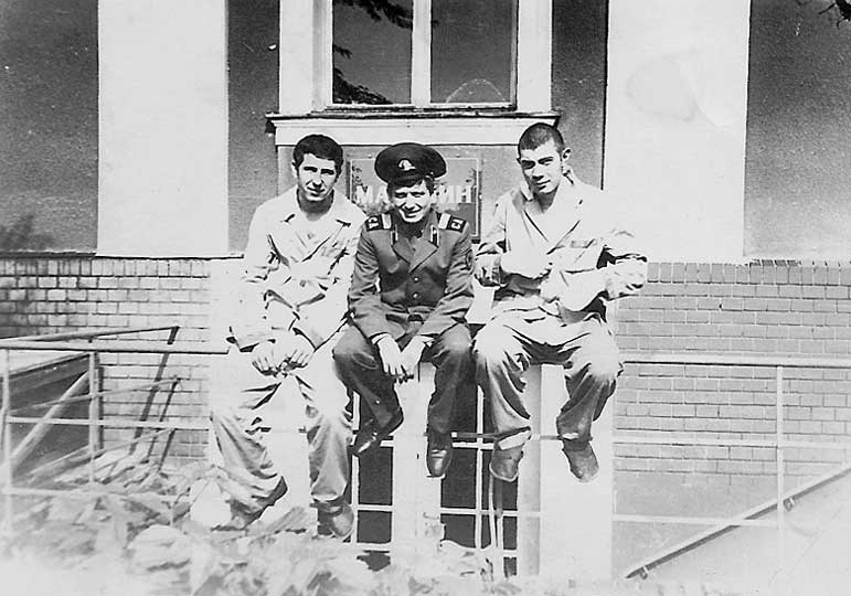 | (16 из 36) Госпиталь. Крайний слева — мой одноклассник Миша Беликов, служил в танковом батальоне (по-моему в 65-м). Осенью 1975 года его комиссовали по болезни. Сейчас, к сожалению, его уже нет в живых... А в центре — медик из 10 отб. Из архива П. П. Голубева. © |