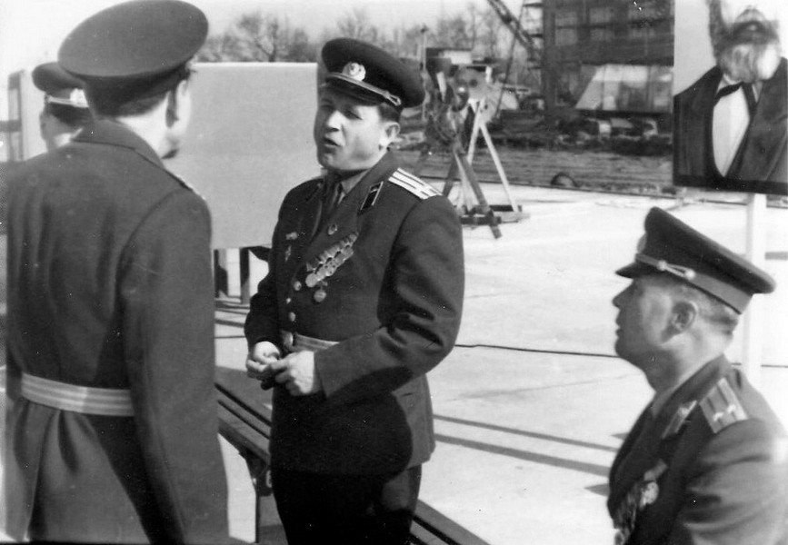 (44 из 84) Берлин, конец 60-х гг. В. К. Петров с офицерами. На заднем плане видно строящееся здание казармы 154 омсб. Из архива В. К. Петрова. ©