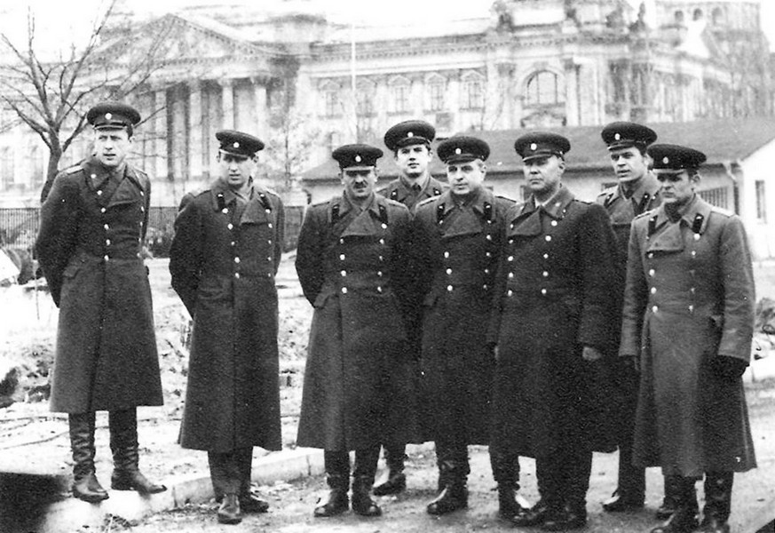 (80 из 84) Выезд на рекогносцировку в Западный Берлин. Комбаты и начальники штабов батальонов бригады у рейхстага. Из архива В. К. Петрова. ©