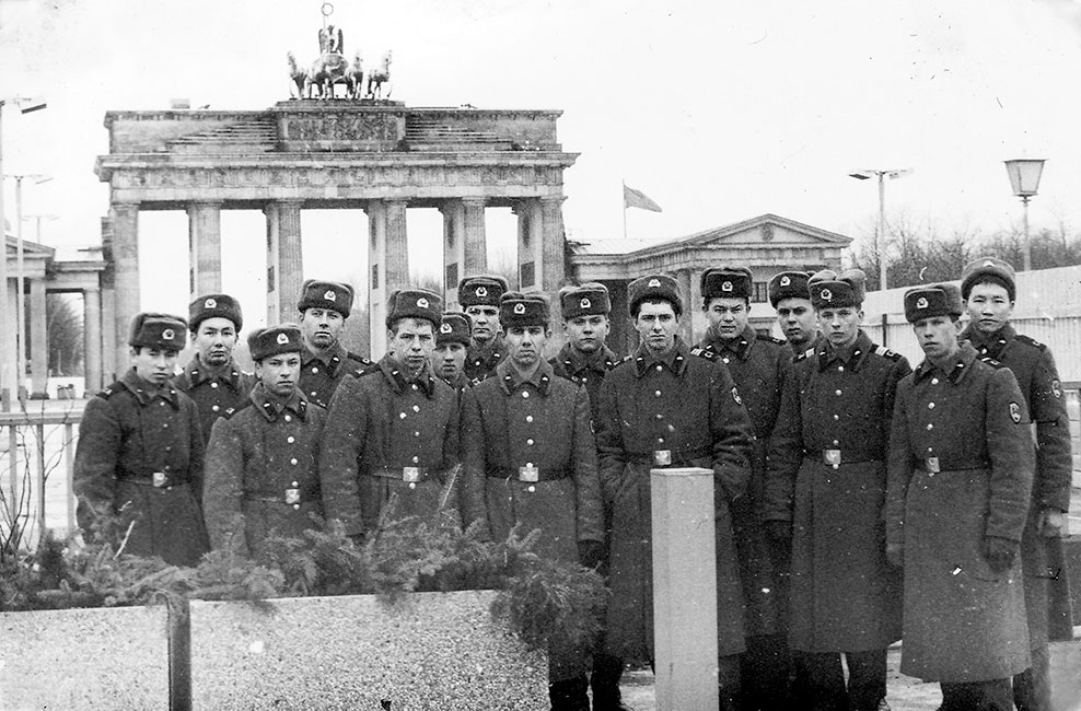 | (17 из 22) На экскурсии у Бранденбургских ворот. Я третий справа, а второй справа – Сергей Лосевичев, механик-водитель моего экипажа. Слева через одного Носов, затем Масленников. А за Масленниковым через одного – Халирбагинов Халир Халирбагинович. Вот такие у нас были имена порой! Из архива А. К. Холодова. © |