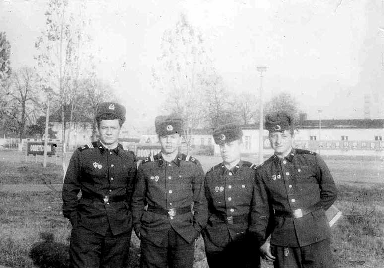 (17 из 48) Берлин. Наш призыв. Справа Дюжев, потом я, Баженов Сашка. Из архива М. М. Нуртдинова. ©