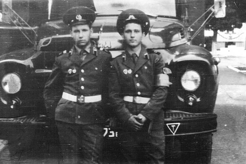 (5 из 19) Дежурный по КПП сержант Василий Старичок и дневальный по КПП рядовой Шахгириев Аслан выпускают хлебовозку в рейс. Из архива В. Старичка. ©