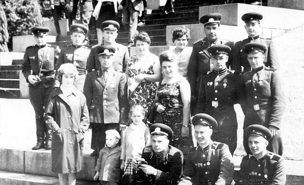 (3 из 12) В берлинском Трептов-парке. В верхнем ряду второй справа – начальник штаба 73 отб майор В. Н. Прус.