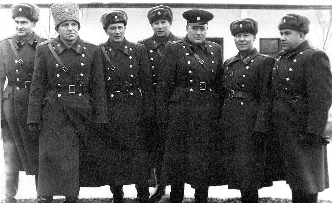 | (7 из 12) Офицеры бригады. Крайний справ В. Н. Прус, рядом с ним командир 178 омсб В. К. Петров, третий слева замполит 178 омсб А. П. Букреев. Предположительно 1969 г. Из архива В. Н. Пруса. © |