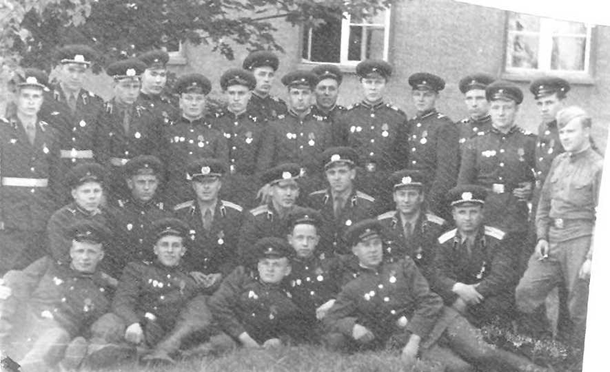 (1 из 13) Танкисты 65 отб (предположительно 2 тр). В первом (нижнем) ряду слева направо: 1-й – Голубев, 4-й – Шулепов Д. Н., 5-й – Разумный. Второй ряд (сидят) слева неправо: 2-й – Слаповский, 3-й – ком. взвода л-т Синаревский, 4-й – ком. взвода ст. л-т Романов Виктор Сергеевич (1943 г. р.), 6-й – ком. роты к-н Горстко, 7-й – ком. взвода Онопенко. В повседневной форме крайний справа стоит Хильченко Василий (г. Смела). Третий ряд слева направо 2-й – Басаргин Петр, 4-й – Гумеров, 6-й – Еремчук Николай (г. Барановичи), 7-й – Мельниченко, 8-й – Гончаренко Слава, 10-й – Сорокалетов, 11-й – Старчак. Штансдорф, 1965 г. Из архива Д. Н. Шулепова. © |
