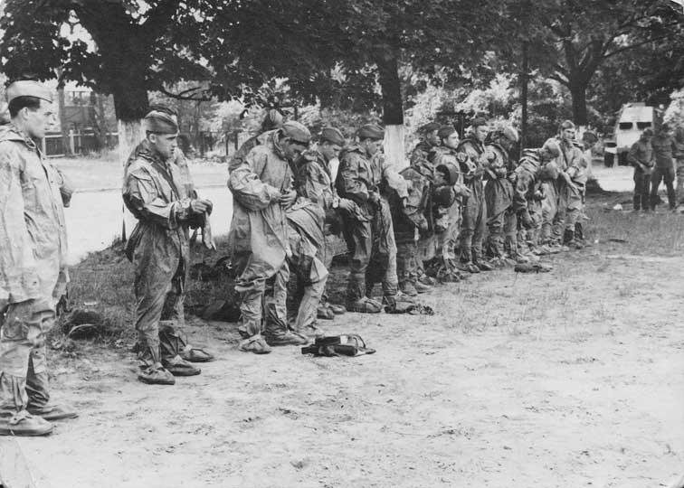 (11 из 13) Тренировка по ЗОМП. Первый в строю Мельниченко. На заднем плане видна машина связи на базе БТР-152. Из архива Д. Н. Шулепова. ©