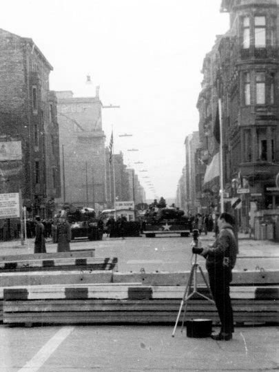 (6 из 21) Берлин, Фридрихштрассе. Вид на со стороны ГДР на КПП Чарли. Октябрь 1961 года.