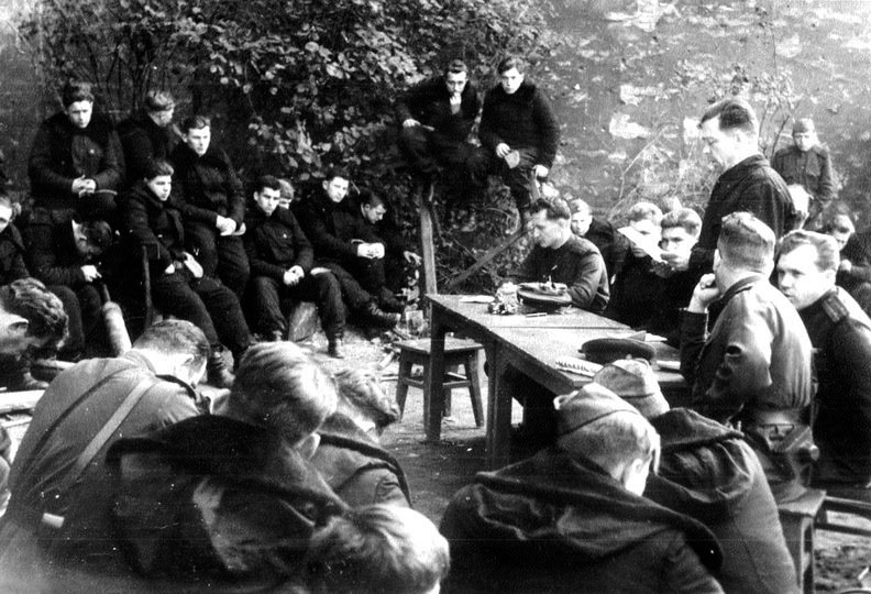 (11 из 21) На собрании. Выступает комбат гв. майор Мика В. Я. Из архива Анны Мика.©