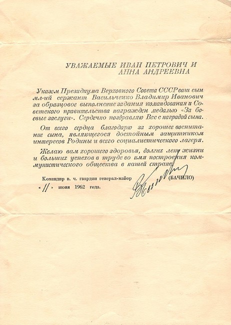 (55 из 66) Благодарственное письмо за подписью командира 6 гв. мсд генерал-майора В. Я. Бачило.