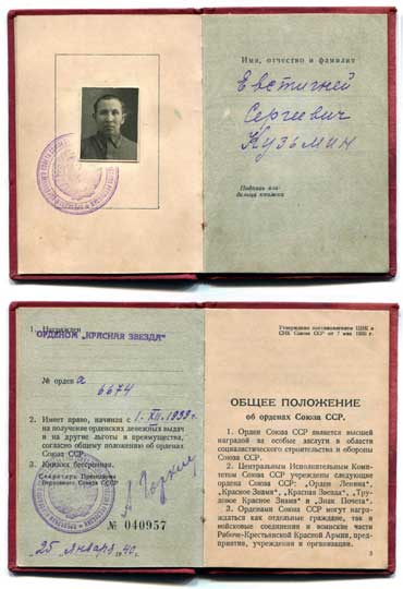 (22 из 25) Удостоверение к ордену Красной Звезды № 6674, которым Е. С. Кузьмин был награжден