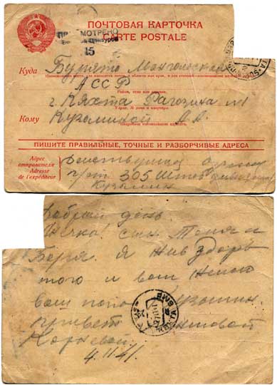 (23 из 25) Открытка с фронта, датированная 4 ноября 1941 года. Из архива М. А. Еремич. ©