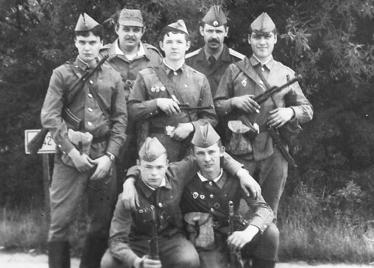 (16 из 20) 2 взвод связи и начштаба 2 мсб гв. майор Отришко. Запасной район, лето 1989 года.