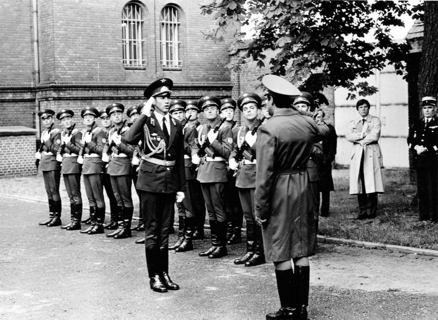 (12 из 37) Шпандау, 1 июля 1984 г. Командир бригады гв. подполковник В. А. Романов принимает доклад.